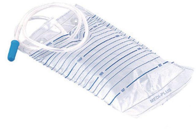 שקית שתן נצמדת לרגל על ידי רצועות אלסטיות הנסגרות על שוק או ירך בצורה מושלמת באמצעות כפתור